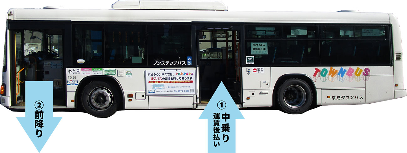 前乗り(運賃前払い)ご利用方法※(金02)金町駅〜三郷中央駅・三郷駅南口